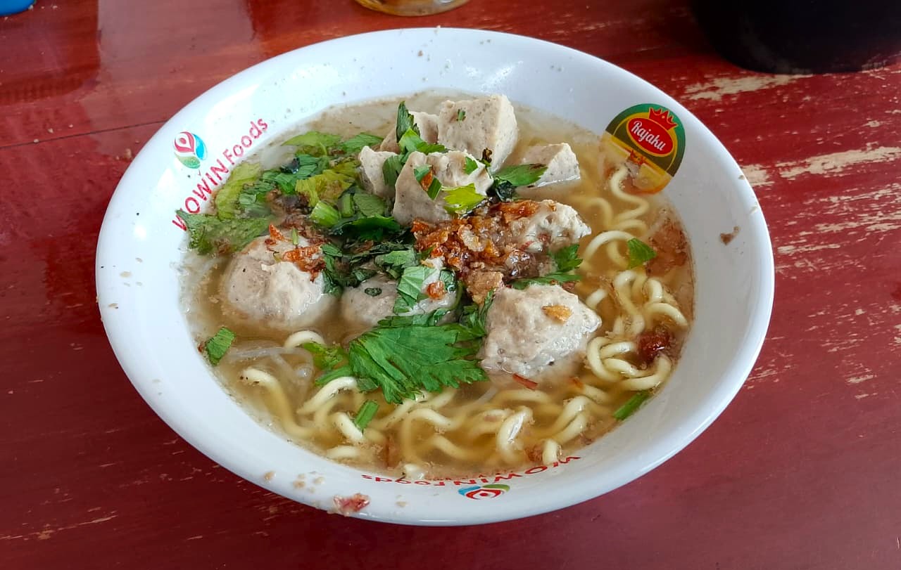 Bakso berdaging dengan kuah gurih
